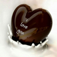 The image shows a chocolate heart with the phrase "I love you" written on it. This is a symbol commonly associated with romantic expressions of love and affection, often given as a gift or a message to express feelings for someone special.