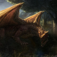 The image shows a fantasy scene featuring a dragon. It appears to be an artwork with a detailed and vibrant style, depicting the dragon in a serene or restful pose, possibly surrounded by a natural setting. The colors are rich, and there's a sense of depth and texture that suggests this might be part of a larger fantasy narrative or game.