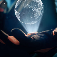 holographic projection emanating from the globe, which could be representing the planet Earth. The image conveys a sense of technology or environmental awareness.