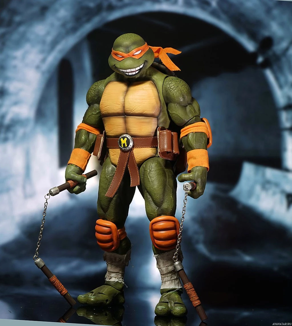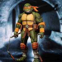 The image features a figure of Michelangelo from the Teenage Mutant