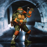 The image shows a figure of Michelangelo, one of the Teenage Mutant