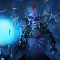 the video game Dota 2. This character is known as Lich, and he is depicted in a fantasy setting with a magical, otherworldly appearance. He is wearing armor and has