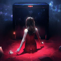 various objects scattered around, including what appears to be a star map or celestial chart, suggesting that the character might be involved in some sort of space-related adventure or exploration. The overall mood of the image seems mysterious and suspenseful.