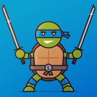 The image depicts a character known as Leonardo, one of the Teenage Mutant