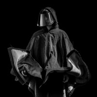 a dark background. They are wearing an outfit that resembles the attire of a character from