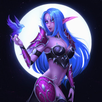 a full moon, adding to the fantastical atmosphere of the image. The term "drow" often refers to dark-skinned elves in