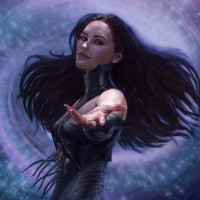 a female character with long dark hair. She is wearing a black outfit and has a stylized appearance, which could suggest that she is a character from a game or