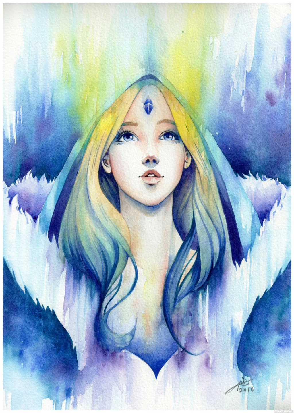 Crystal Maiden," a member of the team DotA: Allstars. However, without additional context, it's not clear if this illustration has any specific connection to the Dota 2 universe or if it's just an artistic interpretation inspired by the game.