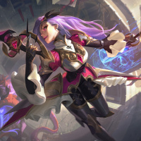 the video game "League of Legends," which is a multiplayer online battle arena (MOBA) game. The character depicted is Katarina, known for her dual-wielding