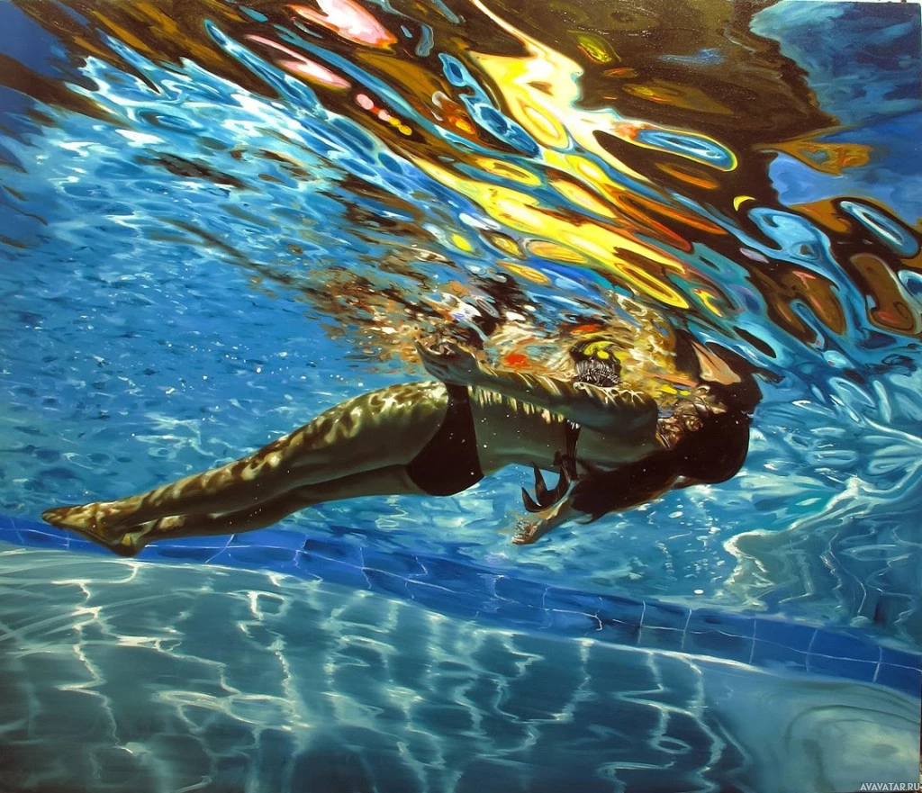 a moment of tranquility or exercise in an outdoor pool setting.