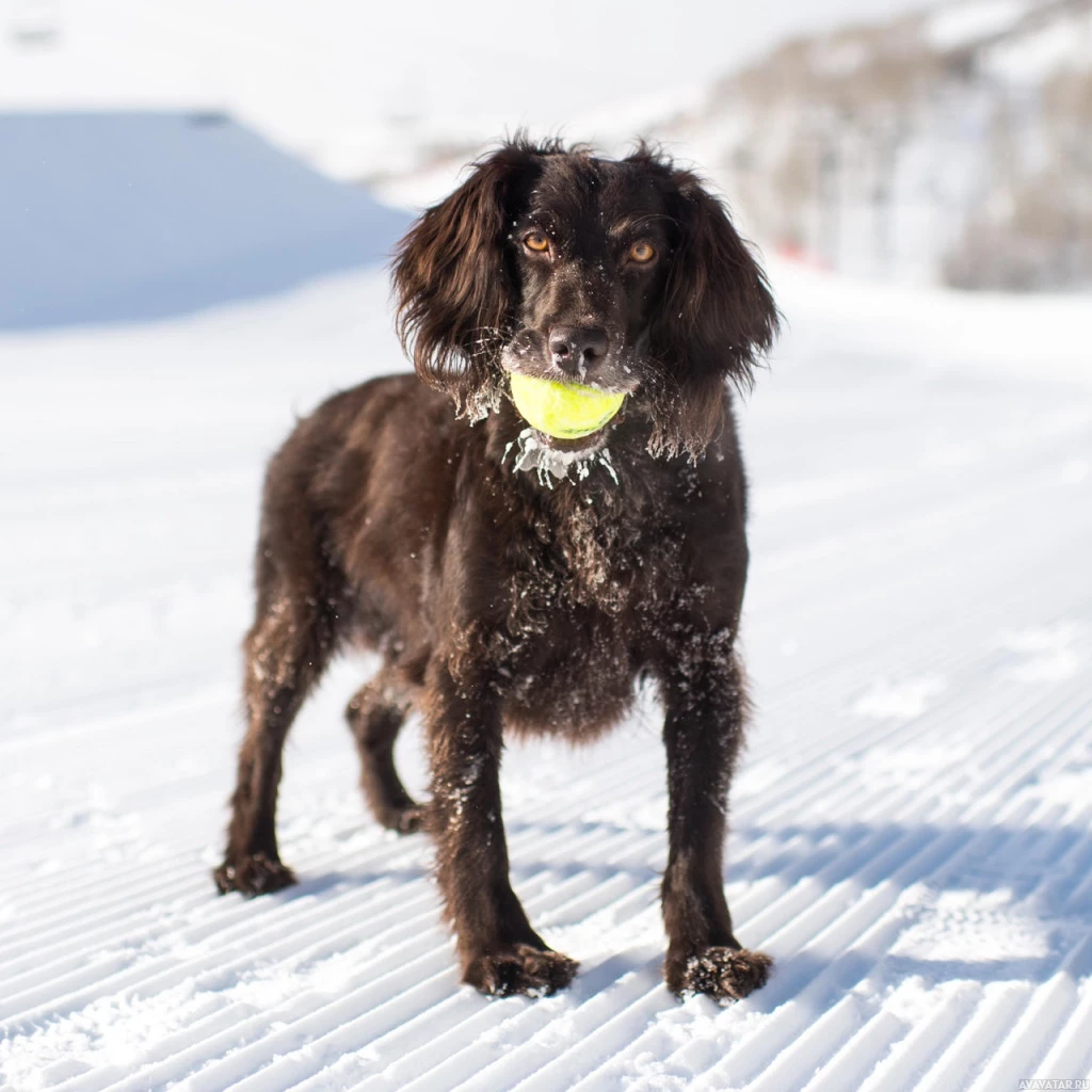 a sense of fun and playfulness in the scene, as dogs often enjoy fetching and playing with balls like this.