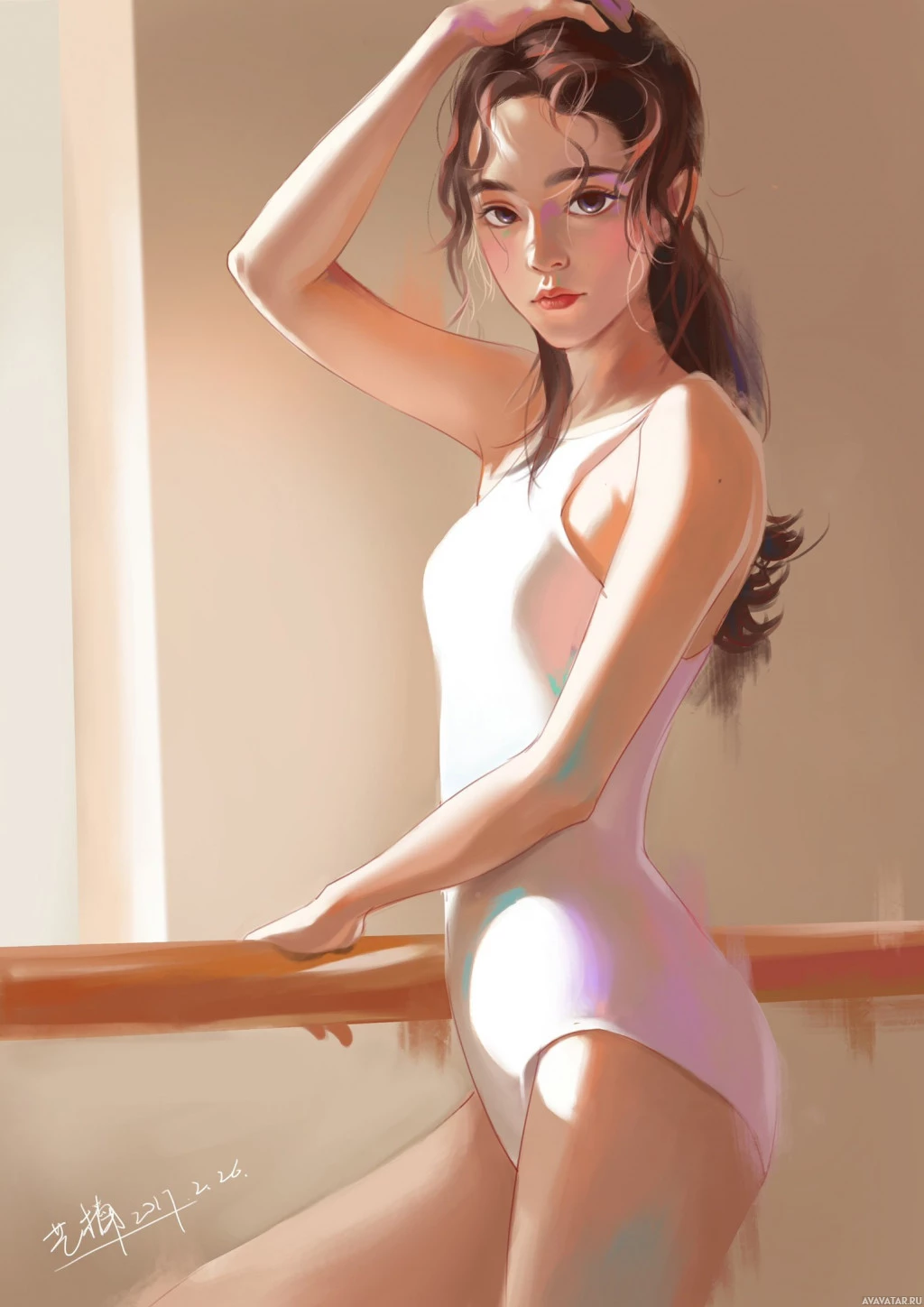 девушки | Скачать аватары с девушкой | Girls | Девушка в леотарде, держащая волосы назад