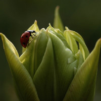 На картинке изображен божья коровка, расположенная на кончике того, что кажется растением артишока. Основное внимание уделяется крупным планом божьей коровки с ее отличительной красной и черной окраской, что указывает на то, что она находится в состоянии покоя или, возможно, ищет пищу.