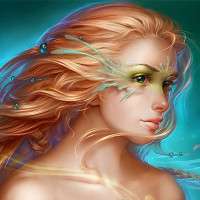 a magical orb or gem in her hand, which suggests she might have some sort of mystical or enchanted power. The artwork evokes