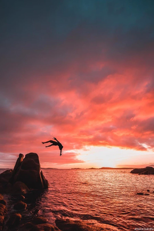 hues of orange, yellow, and pink, indicative of a setting or rising sun. The individual's silhouette is visible against