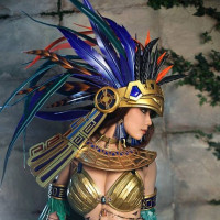 an ancient temple or pyramid. This is likely a costume for historical or fantasy-related purposes, such as a themed event, cosplay gathering, or
