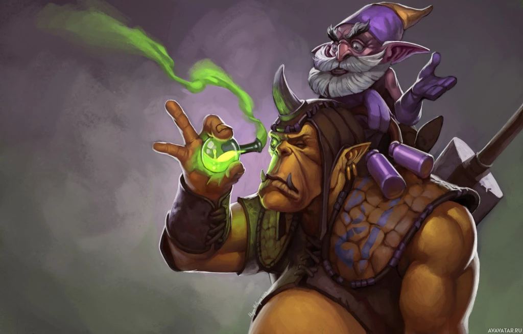 the video game "Dota 2," known as Alchemist. He is depicted in his signature pose, with one hand holding an orb that emits green smoke, symbolizing his