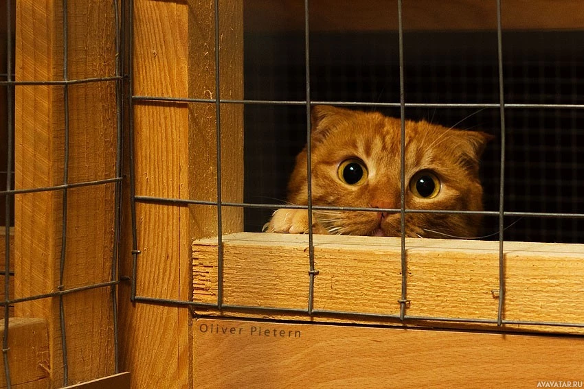 a tabby cat peeking through the wire mesh of its cage. The cat has