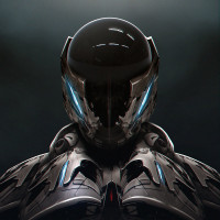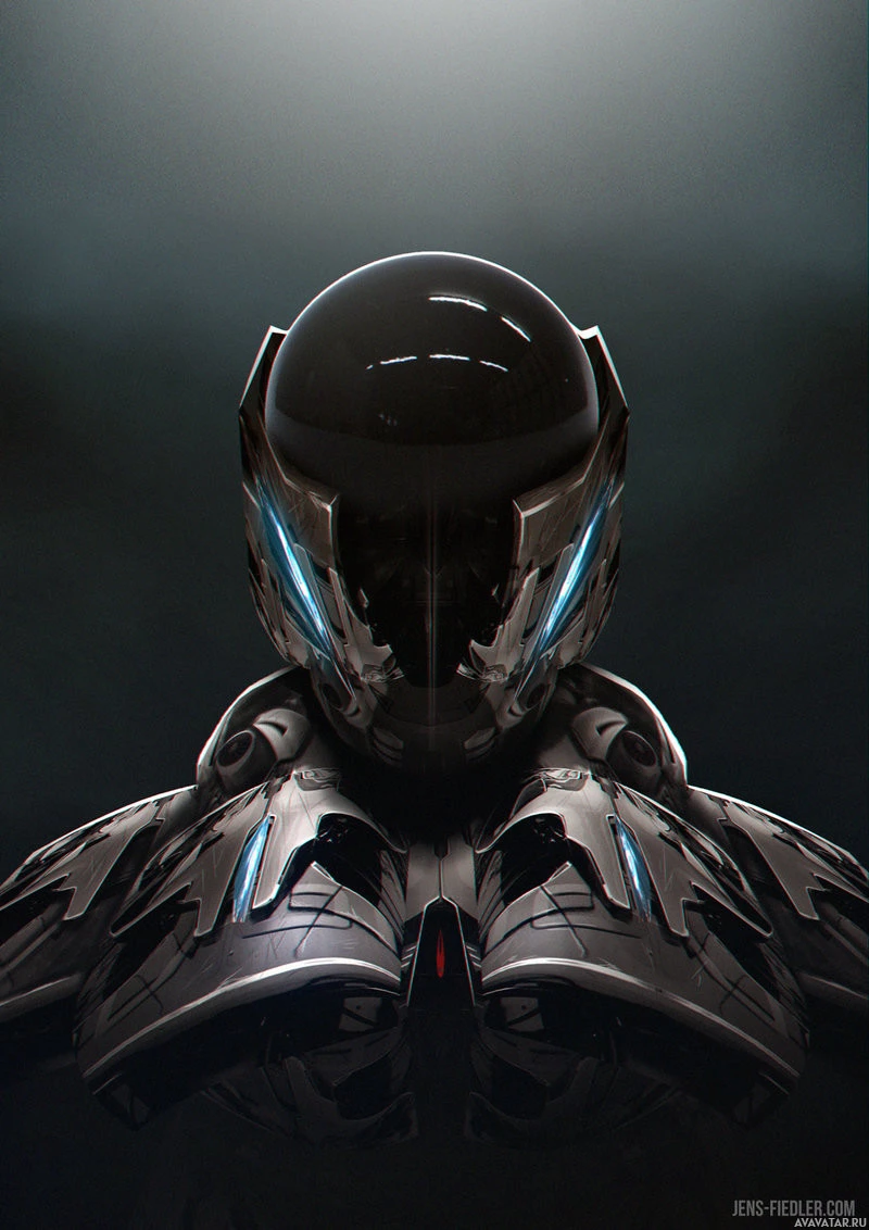 a humanoid form with what looks like mechanical or cybernetic parts integrated into its design. The color palette is primarily dark, creating an atmosphere of technology and possibly a futuristic theme.