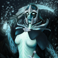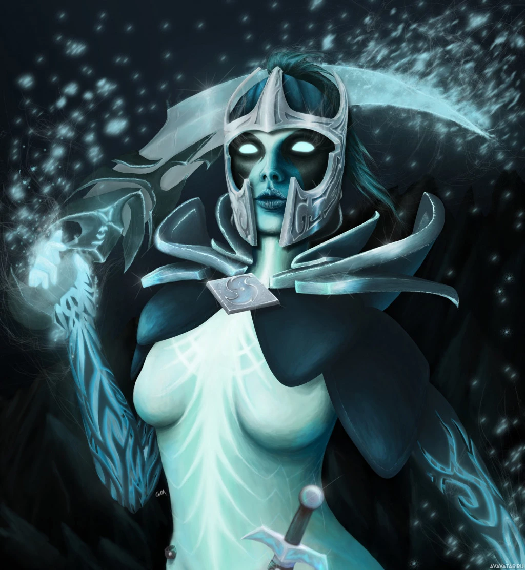 Phantom Assassin from the game Dota 2. She is portrayed with a fantasy, dark theme, wearing armor and holding a scythe-like weapon. The art style suggests it could be fan art or