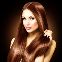 The image shows a woman with long red hair. She appears to be wearing makeup that enhances her features and she has a styled hairstyle that falls over her shoulders. She is looking directly at the camera, which gives her an engaging appearance.