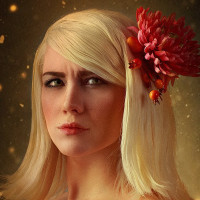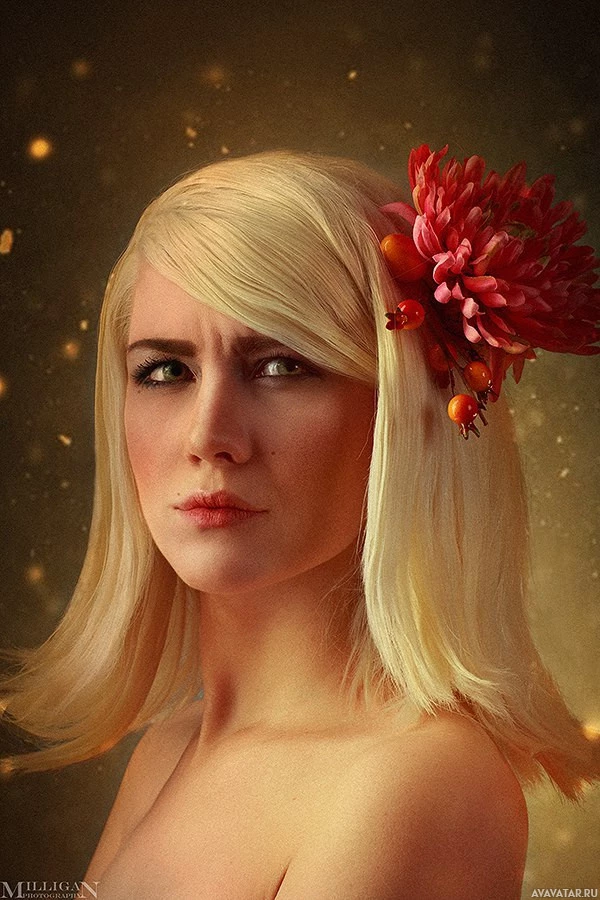 a fantasy setting or cosplay event. She is not wearing any recognizable clothing items that would indicate her being in a specific game or character. The artwork is reminiscent of classic portraits, but with a modern and whimsical twist.