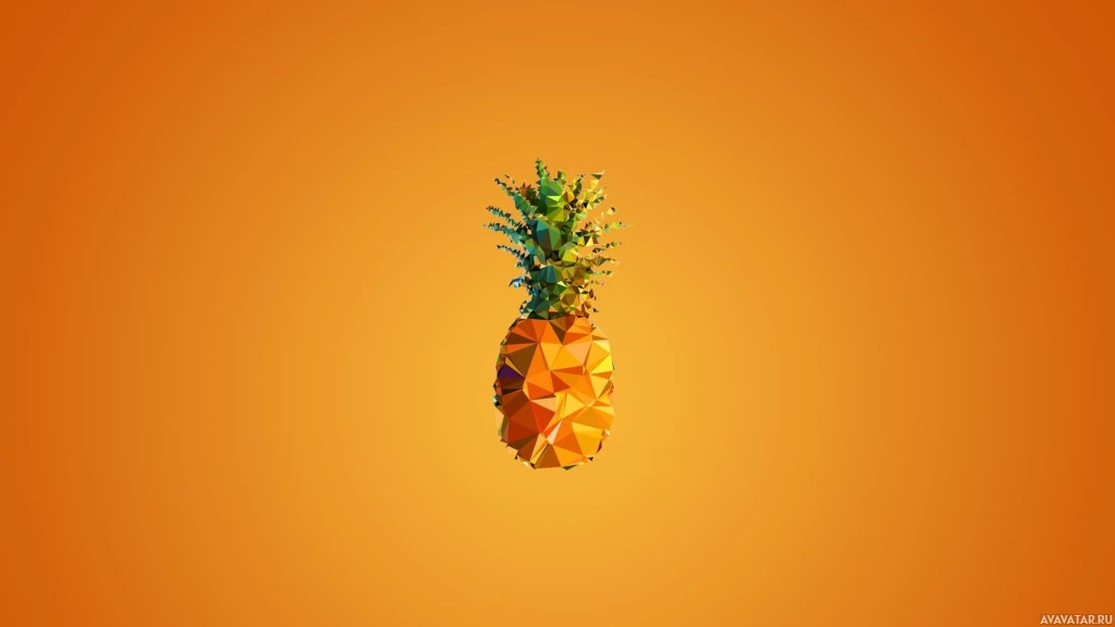 Картинка показывает ананас на оранжевом фоне. Ананас представлен его типичными зелеными листьями и коричневым стеблем, что придает ему вид свежего или спелого.