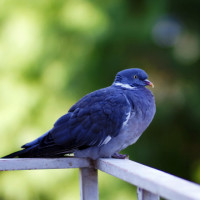 The image shows a bird, specifically a pigeon, perched on what appears to be