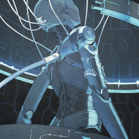 artificial intelligence or robotics technology. The robot is positioned in what appears to be