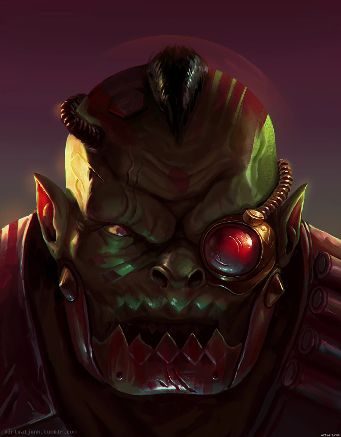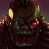 a fantasy orc. This creature has a prominent brow ridge, pointed ears, and