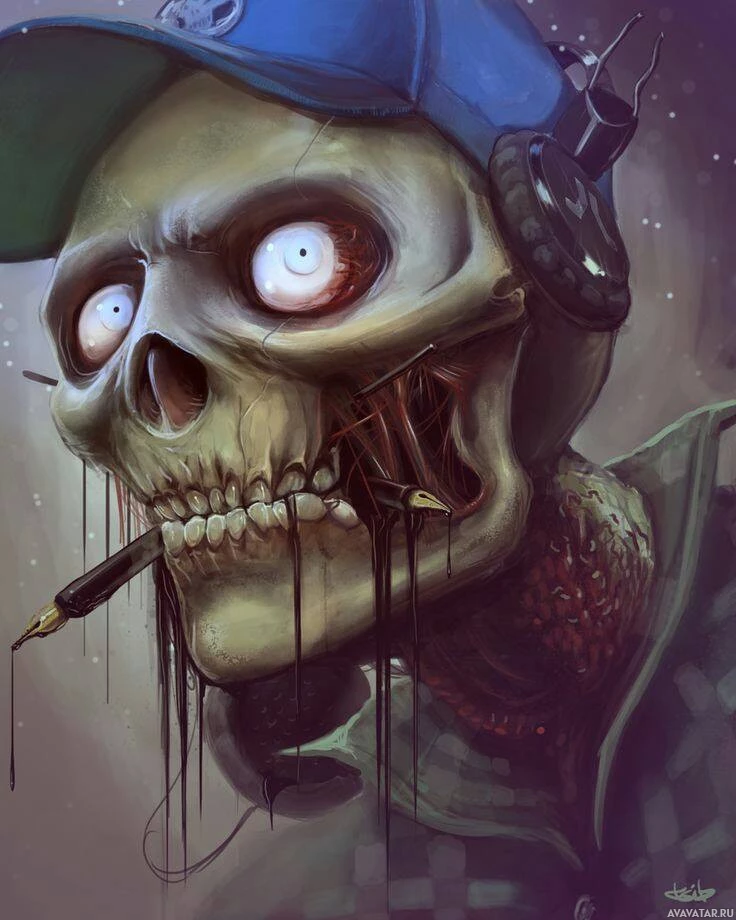 a baseball cap and appears to be listening through headphones. The overall style of the image suggests it may have been created for