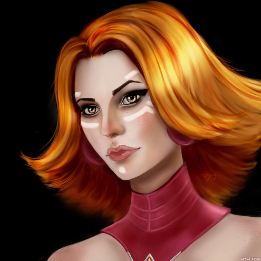 a character from the game Dota 2, known as Lina. The image shows her with