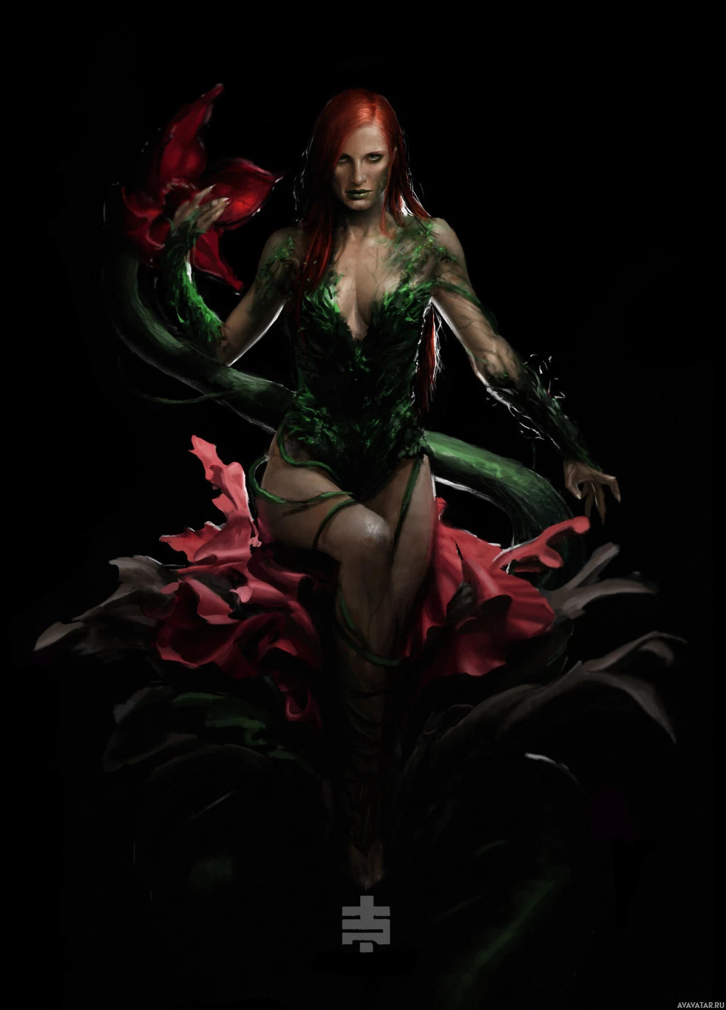 an illustrated character that appears to be Poison Ivy, a fictional supervillain from the Batman universe. She is depicted in a stylized and artistic manner, with