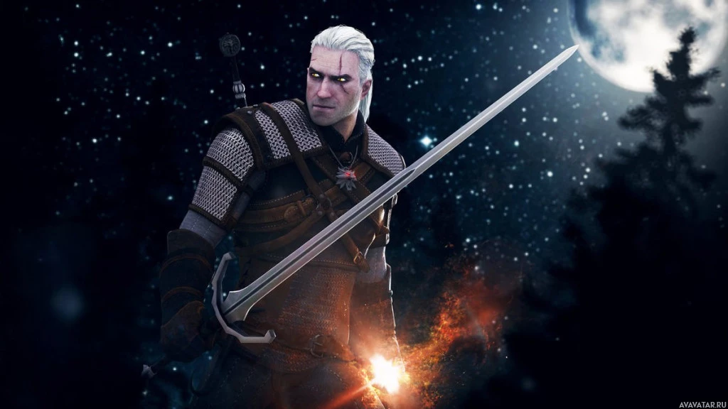 The image shows Geralt of Rivia, a character from