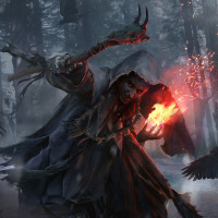 fantasy genres. The artwork has an intense, almost otherworldly feel to it, suggesting that this character could be casting a spell or engaging in some form of dark magic. The image does not contain any explicit text, focusing solely on the visual elements to convey its narrative and themes. The use of lighting, color, and composition in the artwork contributes to creating an immersive and mystical atmosphere that is typical of fantasy-themed art.