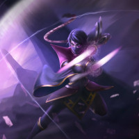 an action pose, wielding a sword and a shield, with magical energy visible around them. The color palette of the image is quite dark, with purple and black tones, which adds to the intensity and fantasy atmosphere typical of Dota 2 gameplay.