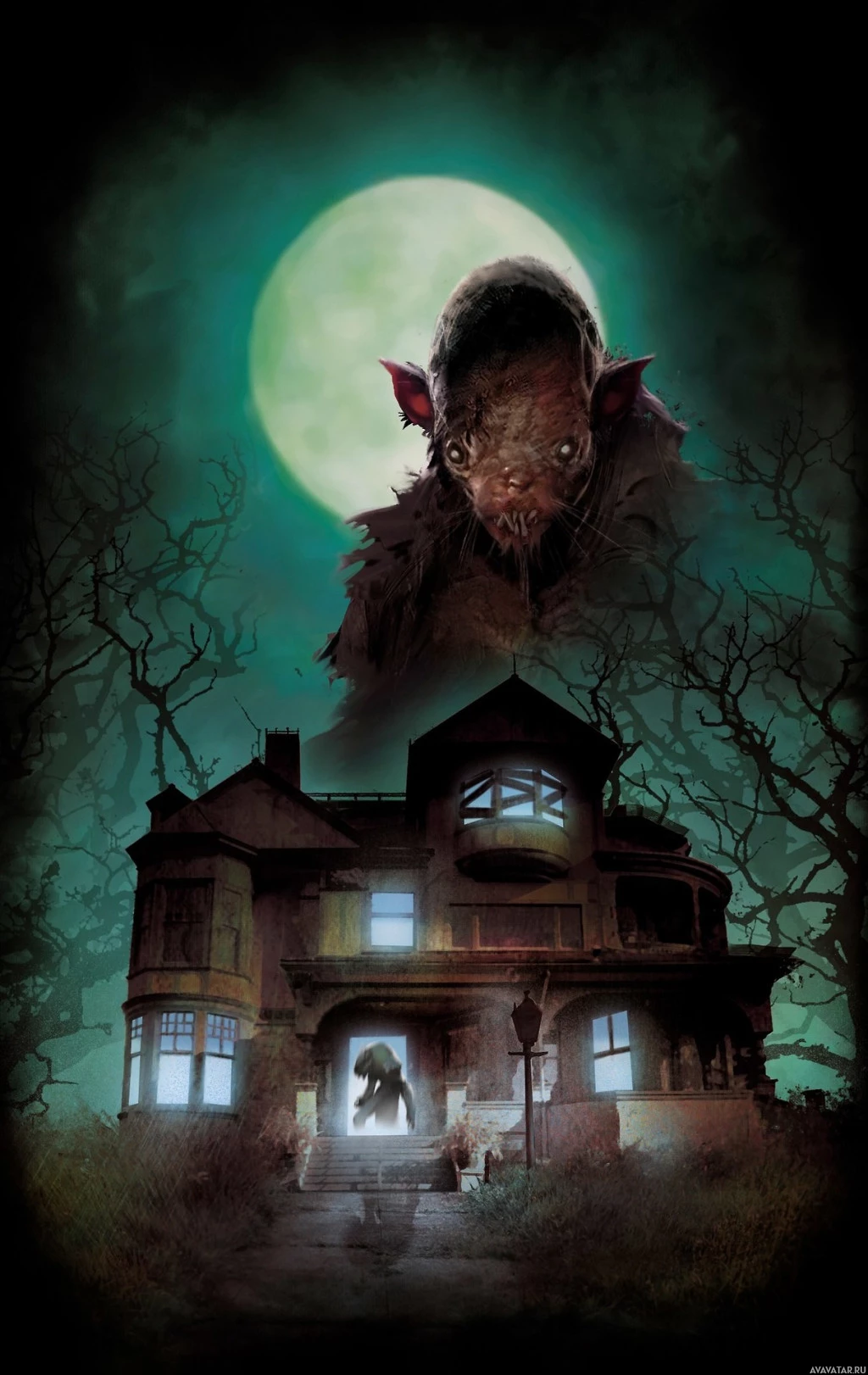 the full moon, which is often associated with witchcraft and werewolves in folklore. On the right side, there's an ominous figure resembling a demon or a creature from mythology, adding to