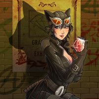 card game or trickery that is characteristic of the Catwoman persona in various comics and media. The art style suggests it might be inspired by comic