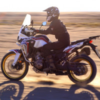 The picture features a person wearing a motorcycle helmet and riding a motorcycle. The setting appears to be a sandy area, possibly on a beach or in a desert-like environment during sunset, given the warm lighting and long shadows.
