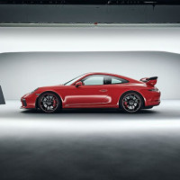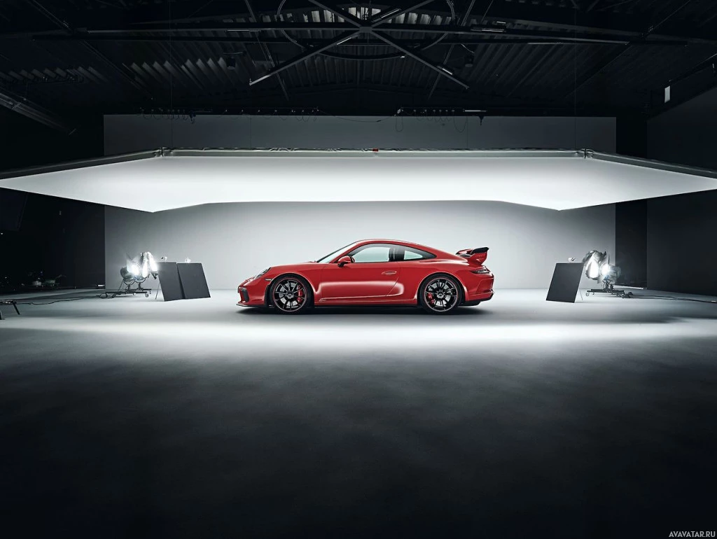 sports car in what appears to be a studio setting, possibly for promotional or advertising purposes. There are lights set up around the car, indicating that it might be photographed or filmed for