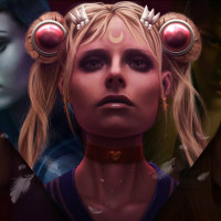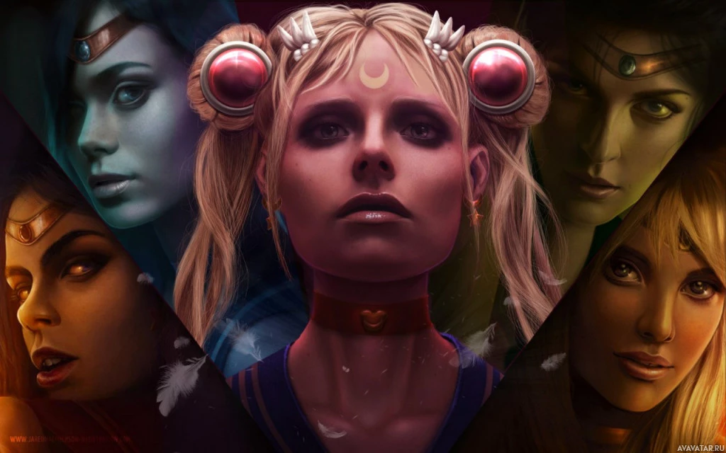 a fan art or digital illustration of the characters from the Sailor Moon series. It shows five