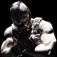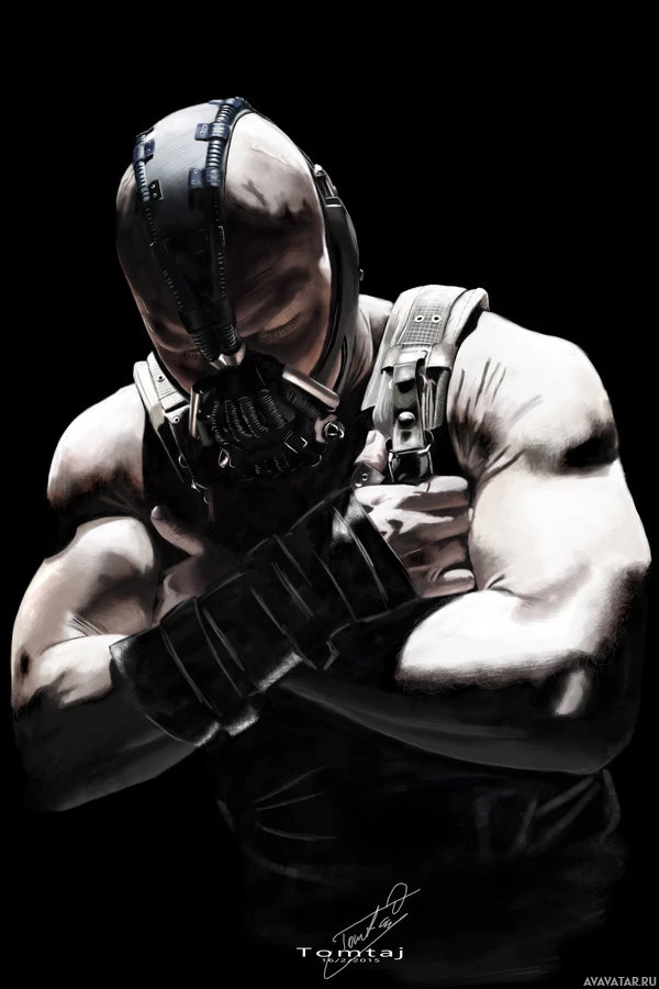 Dark Knight Rises". He is depicted with his arms crossed and wearing a mask that covers his eyes. The art style appears to be
