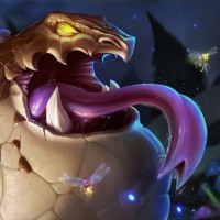 The image features a fantasy-themed illustration of a character that resembles a snake with