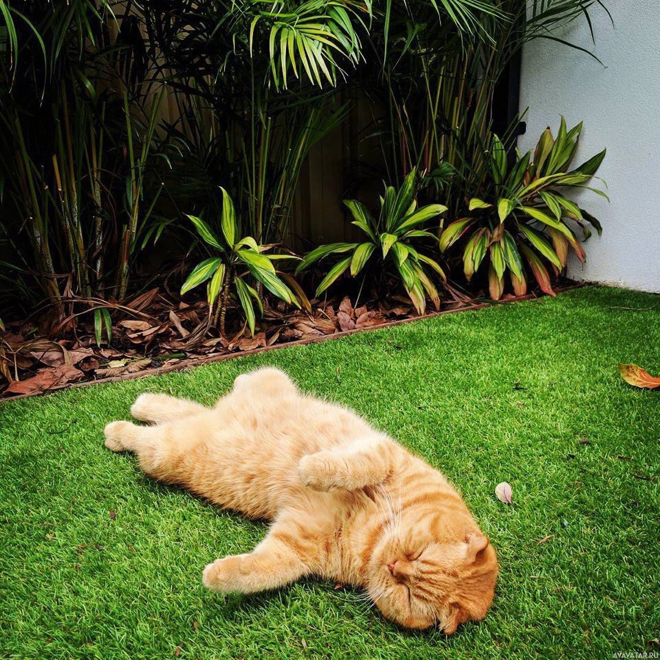 green grass, which suggests that the photo might have been taken outdoors or in a garden area. There are also some plants or shrubs visible in the background, indicating