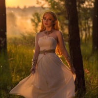 The image features a person dressed in costume, resembling the character of Zelda from a popular
