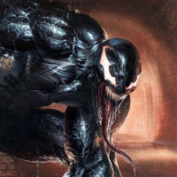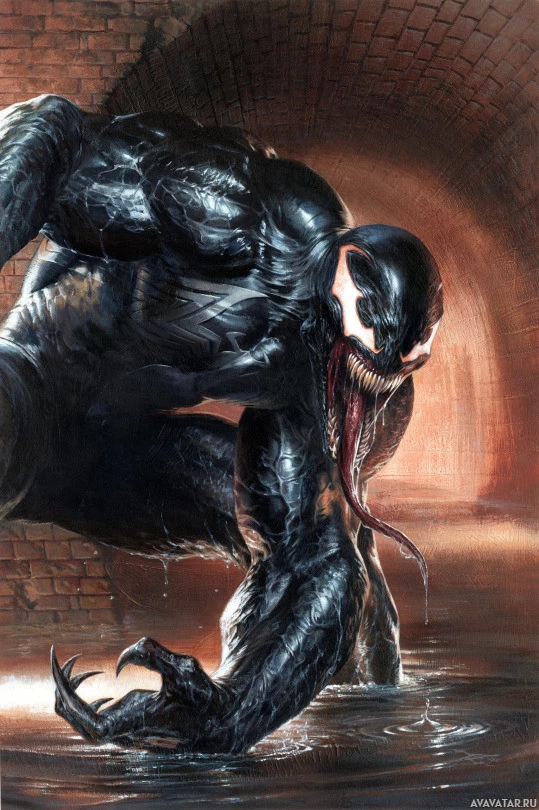 The image depicts a character known as Venom, who is a fictional superhero appearing in American