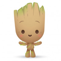 the Galaxy team, and is notable for his ability to grow into a tree-like form. In this particular depiction, Groot appears to be in his more humanoid state, standing upright on two legs with