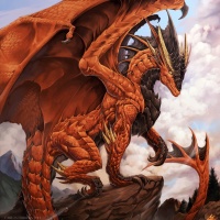 The image shows a fantasy-style dragon. It's depicted with red scales,