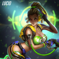 the video game Overwatch. The character is named "Lúcio" and is known for his speed, healing abilities, and sound-based attacks. He's depicted here in his