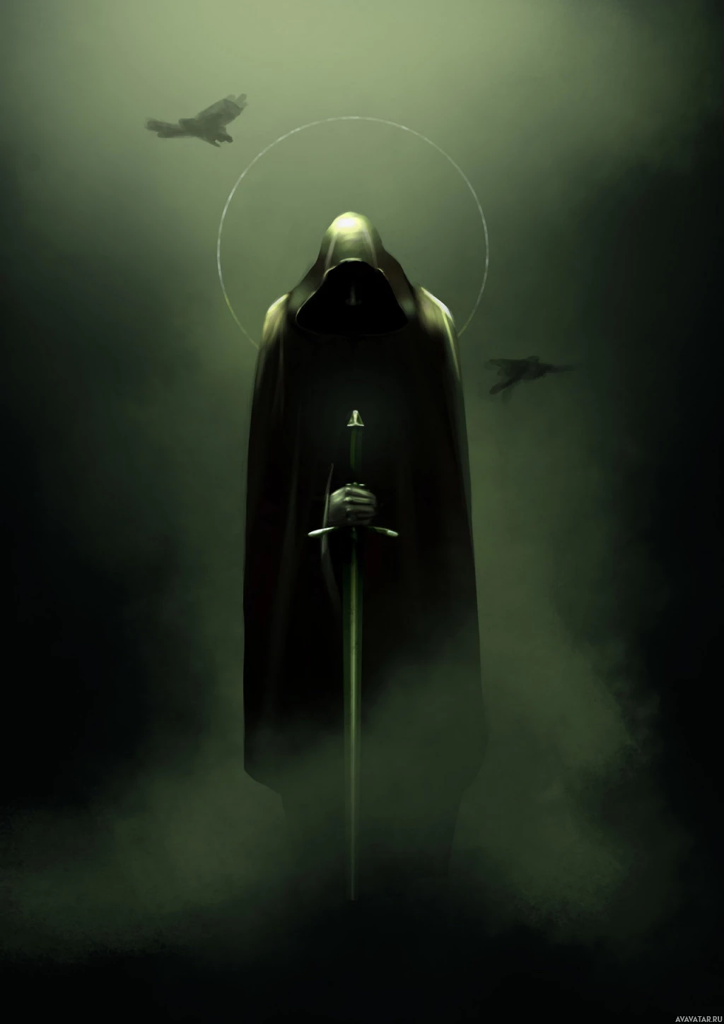 The image features a character that appears to be a figure of religious significance, possibly a monk or clergy member from